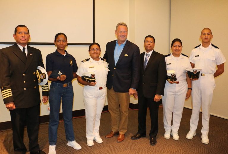 Our scholarship program is over 25 years old beginning with the Escuela Náutica de Panamá and continues today for cadets of UMIP -- like the Cadets featured above with L to R, Captain Julio Bonilla, US Ambassador John Feeley, and UMIP's current Rector, Captain Aladar Rodriguez.