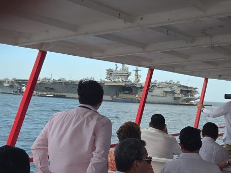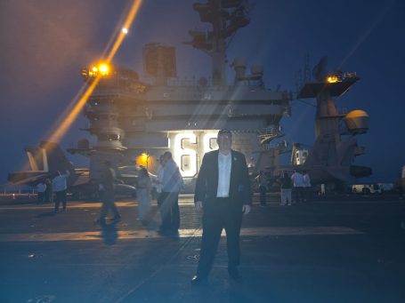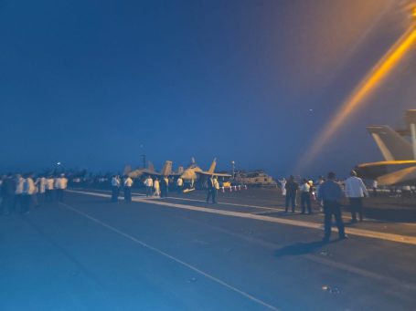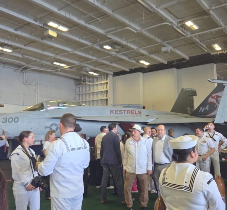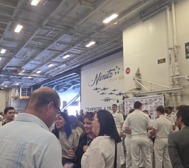 The formal part of the visit began with the arrival of senior leadership via the aircraft elevator—always an impressive sight. Speeches followed from the The US Ambassador to Panama, Marine Corps General Francis L. Donovan, the Commander of U.S. Southern Command (SOUTHCOM), Rear Adm. Cassidy Norman, the commander of Carrier Strike Group 11 (CSG-11), and the Captain Joseph J. Furco Commanding Officer of USS Nimitz.