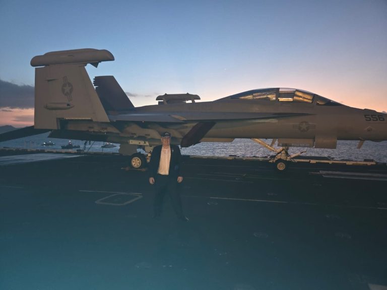 This was one of the highlights for me—meeting a wide range of people, from F/A-18 pilots to senior officers. I was also able to present copies of my book Falkland Skies to several individuals, including Captain Betancourt (the senior naval officer at the U.S. Embassy), the Carrier Air Group Commander, and ultimately the ship’s Commanding Officer.