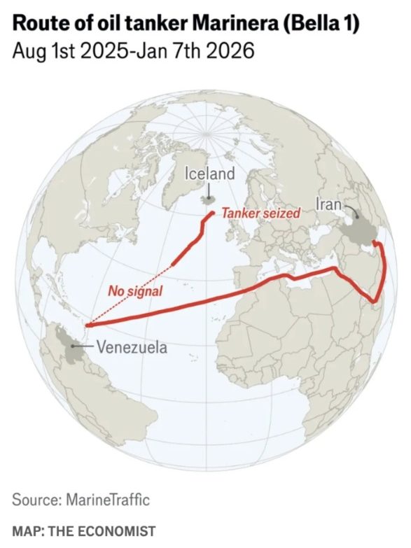 The Marinera was accused by U.S. authorities of being part of a so-called “shadow fleet” that transports sanctioned Venezuelan and Iranian oil by evading monitoring and enforcement.